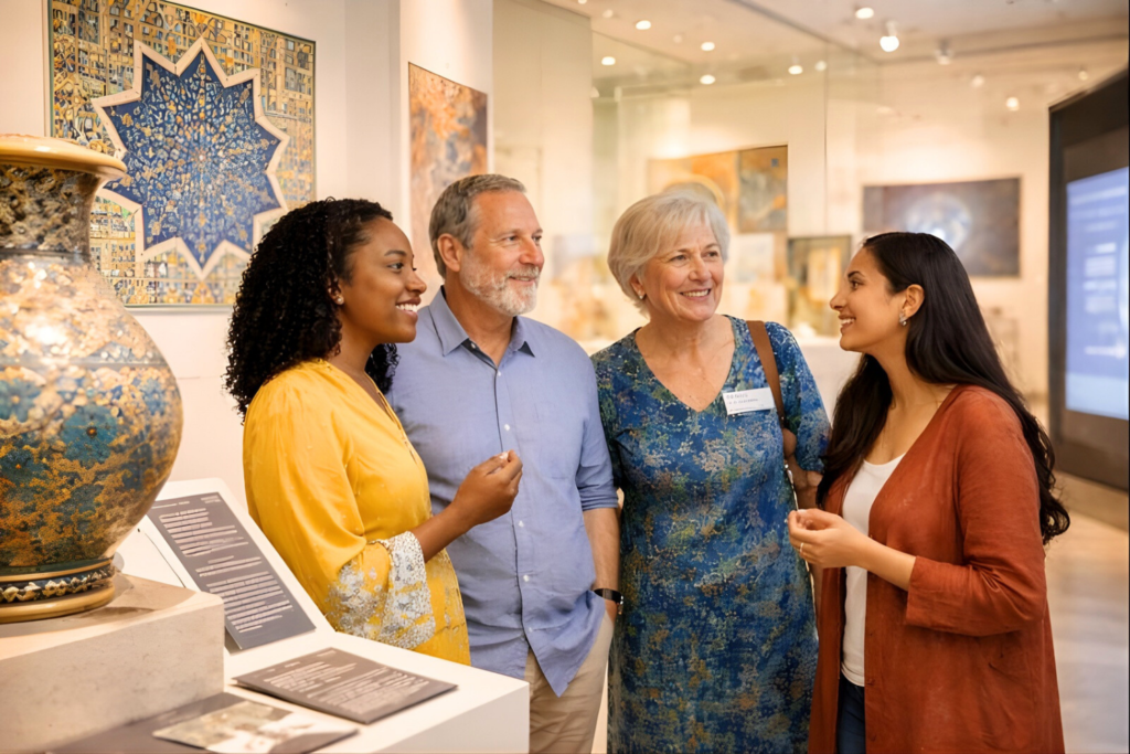 Between Us: Muslim Journeys is available as a traveling exhibition for cultural institutions, community spaces, and educational partners.